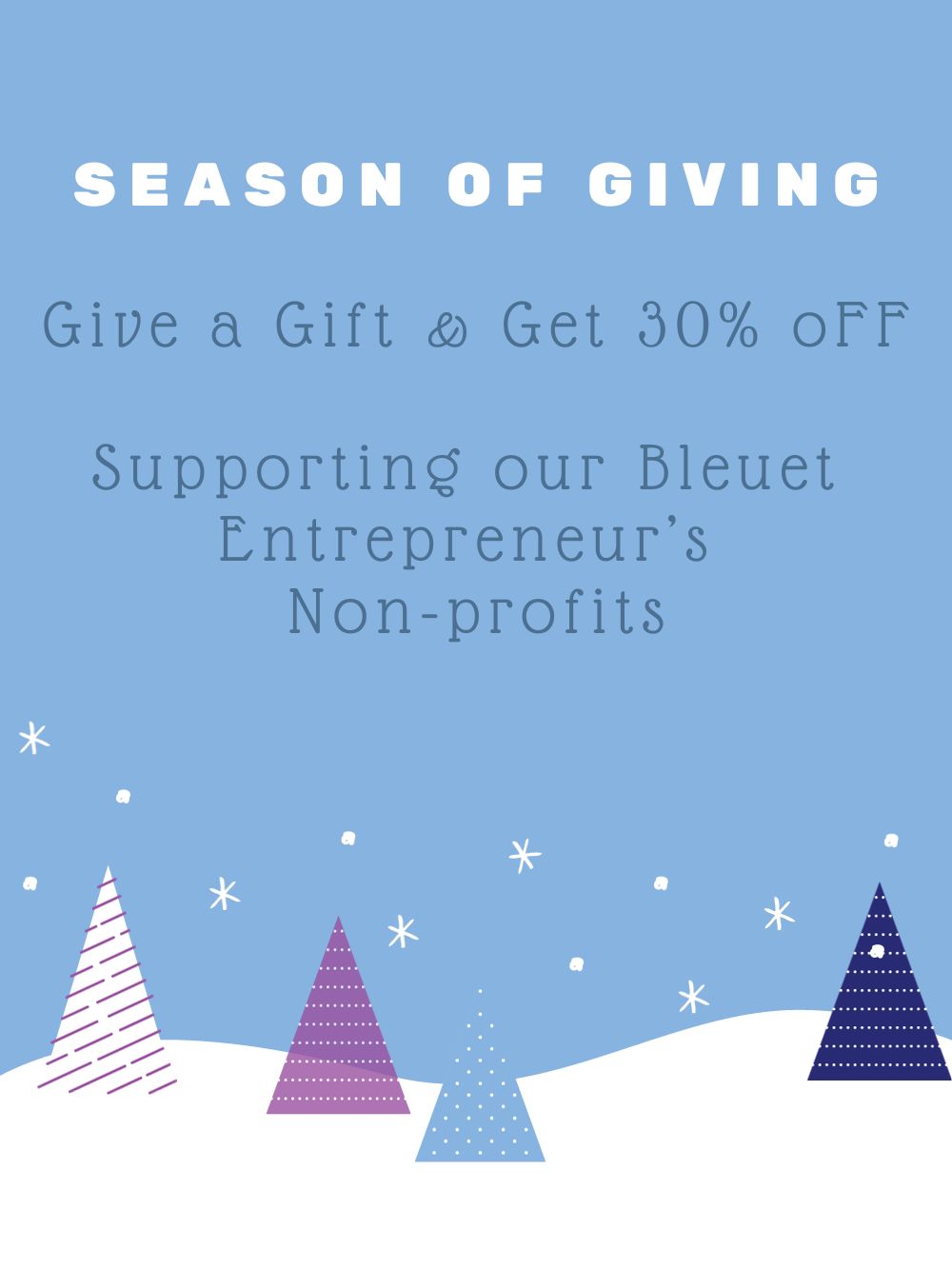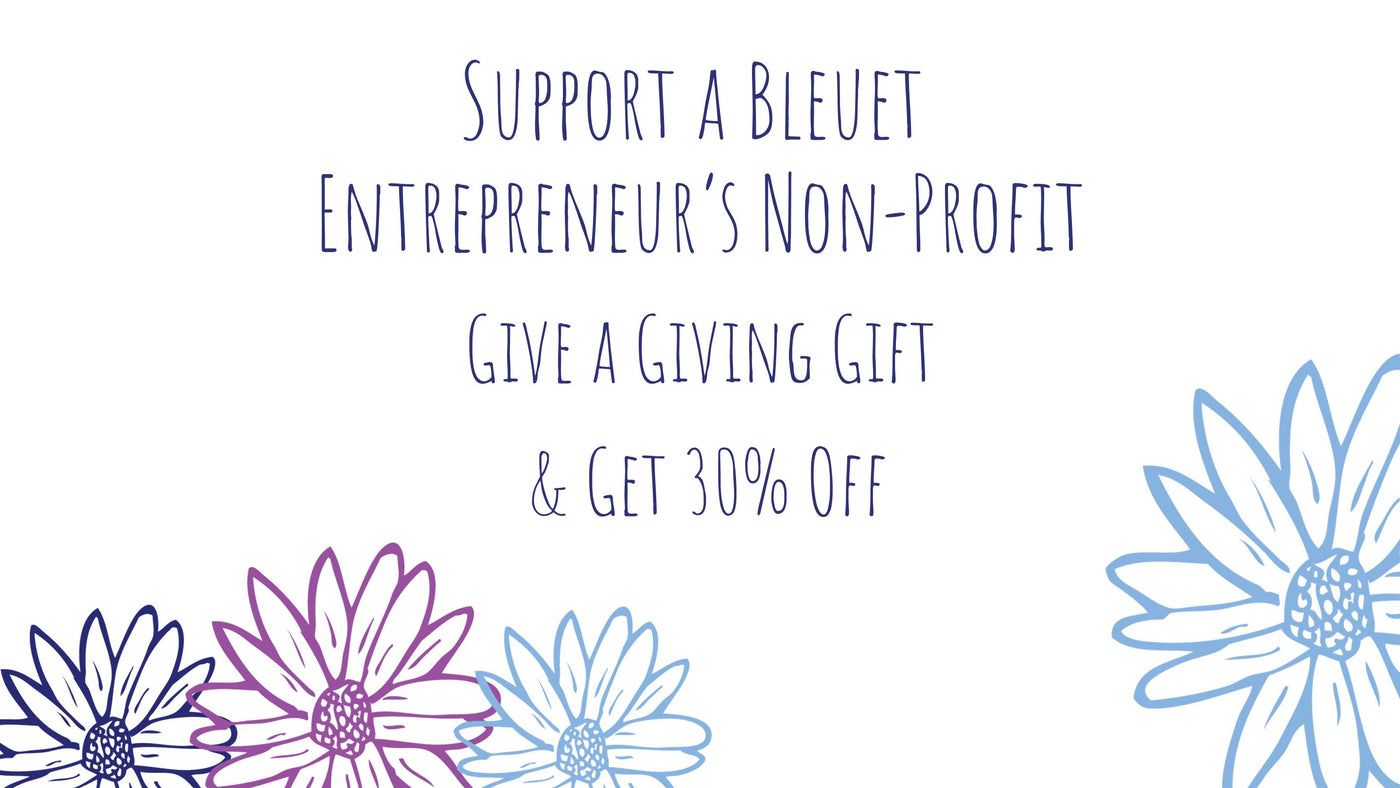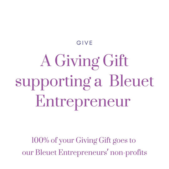 100% of your Bleuet Entrepreneur Giving Gift purchase goes to support their non-profits. You get code for 30% Off your next Bleuet order plus a free Scrunchie for Good.